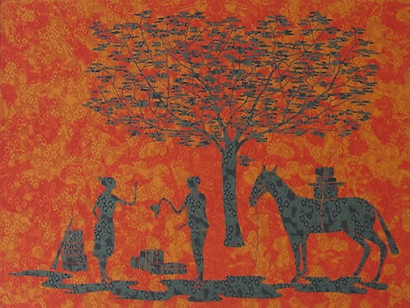 Stephen has described this 75 panel narrative as ‘my Alexander McQueen moment – the unwearable dress- an anti-print.’ The sixth in the ‘Artists’ Laboratory’ series at the Academy, this epic scale visual narrative, partly inspired by the 1958 movie of the same name, fills the Weston Room and the onlooker is given a sense of the human figure pitted against the sweeping landscapes of Wyoming.