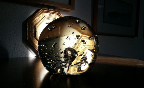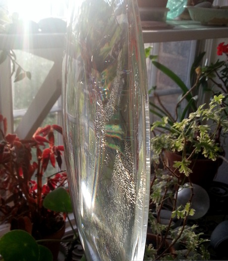 Seen from the side it has become a flecked gemstone – beautifully flawed and intricate.