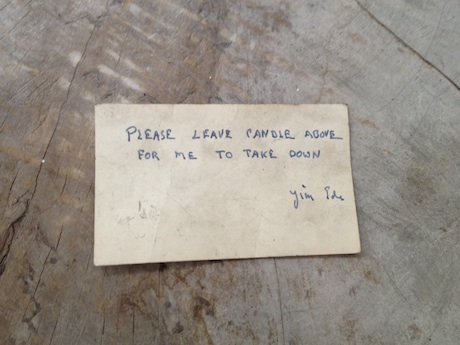 “Please leave candle above for me to take down…”